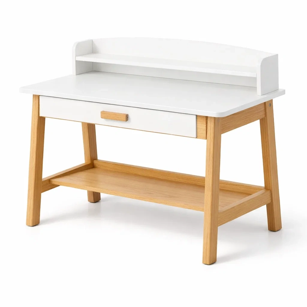 Bureau pour enfant blanc et chêne avec étagère et tiroir